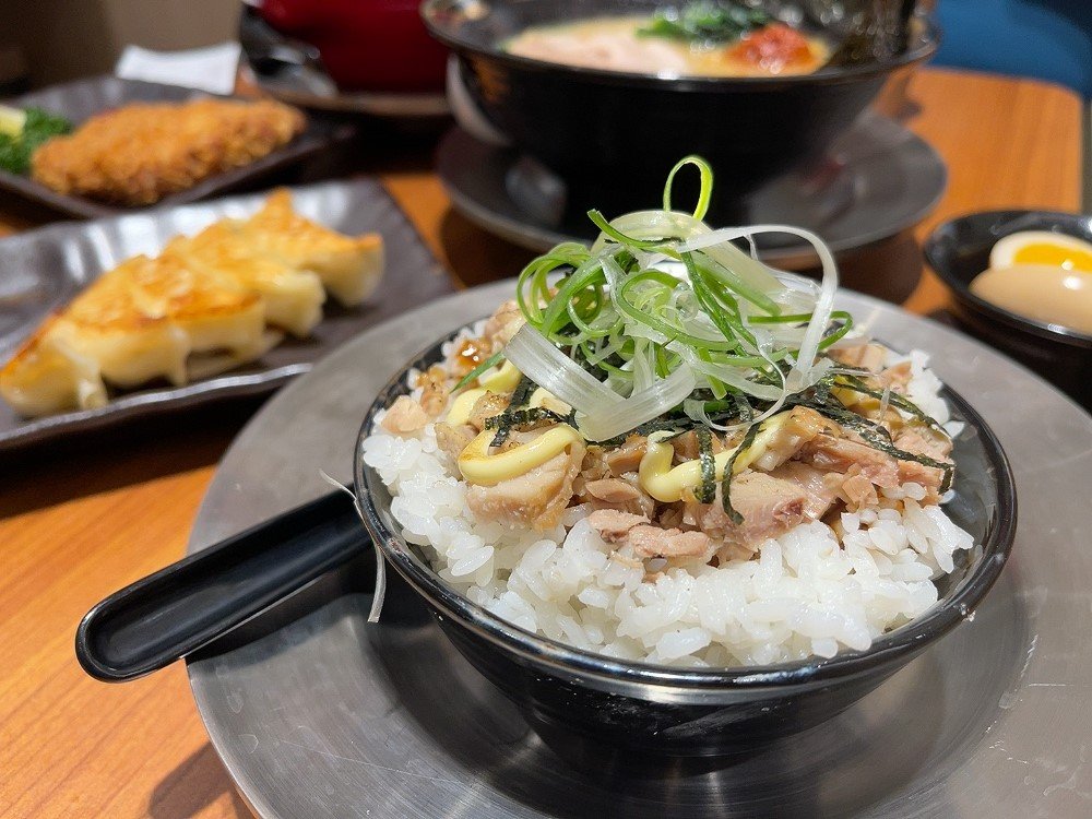 上面有點柴魚和很多的洋蔥、青蔥、豆芽、高麗菜,而且一定要立馬喝湯,味道很雞、很自然,真的好好喝噢。糖心蛋也很厲害,只有皮成型,蛋白到蛋黃是半生熟,一夾就解體了㋡,而且竟然有紹興酒的香味,慢慢的回甘欸。